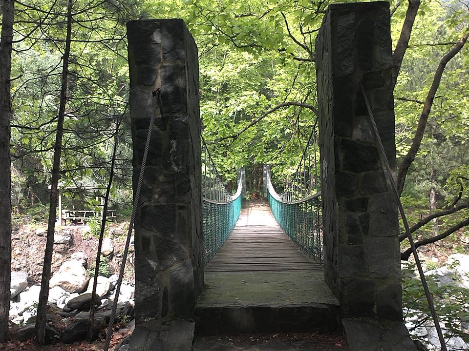 kurulmuş asma köprüden karşı kıyıya geçerek orman içi patika üzerinden devam